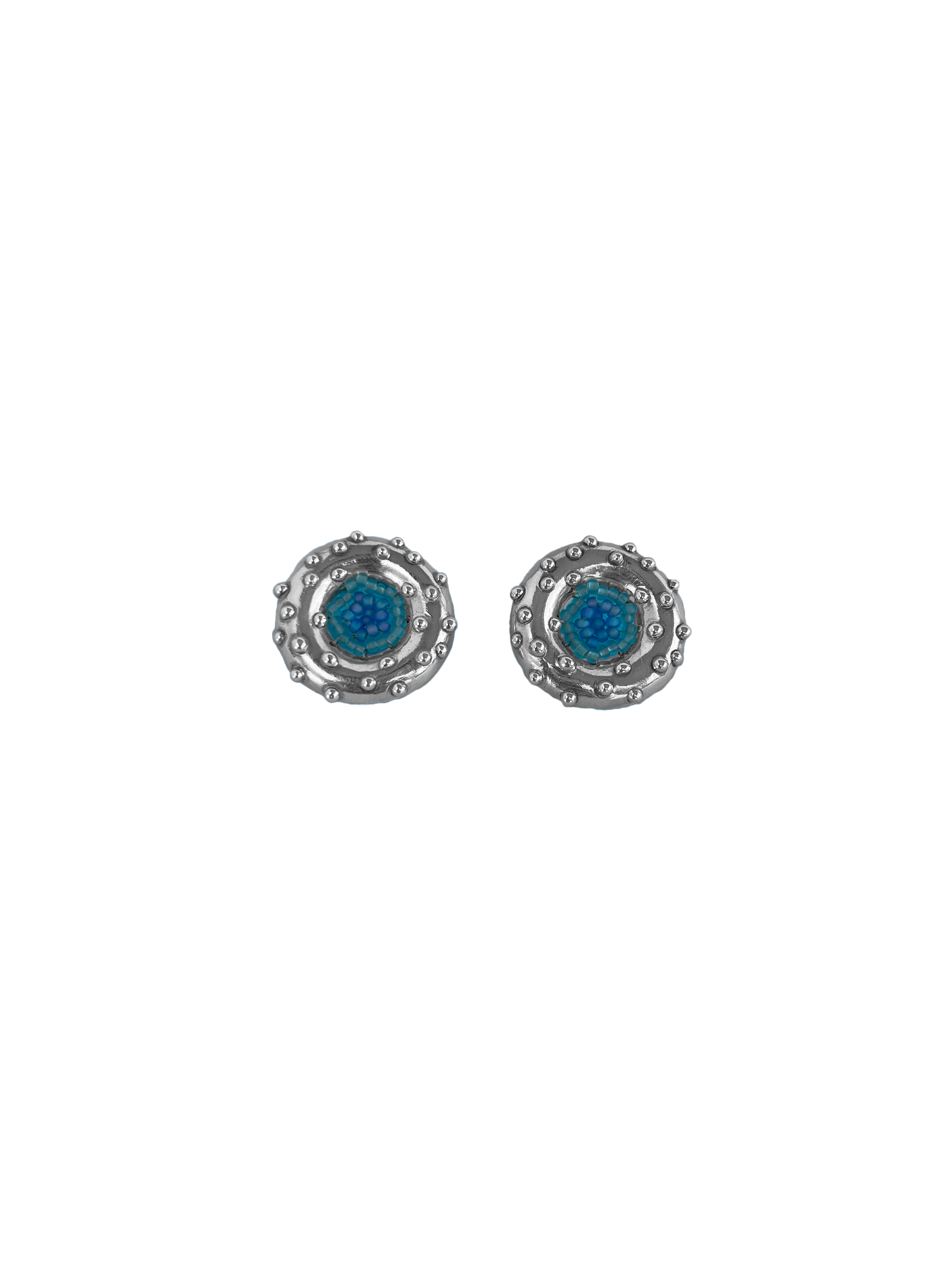 Inspired by the textures and patterns of sea urchins, the Palamós Earrings bring a fresh and vibrant look to any outfit. Made from recycled sterling silver (.925), these statement studs feature a central hole filled with Miyuki Japanese glass seed beads in two shades of blue, giving a unique pop of color. The beads are carefully strung within the earring, creating a design that’s as bold as it is refined.
